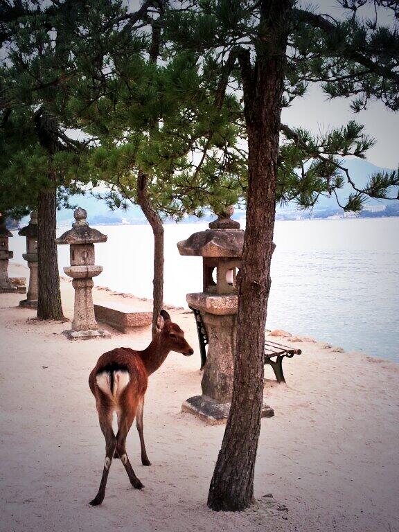 鹿が普通に辺りを歩いているんですが、奈良の鹿より落ち着いた様子なのが印象的でした